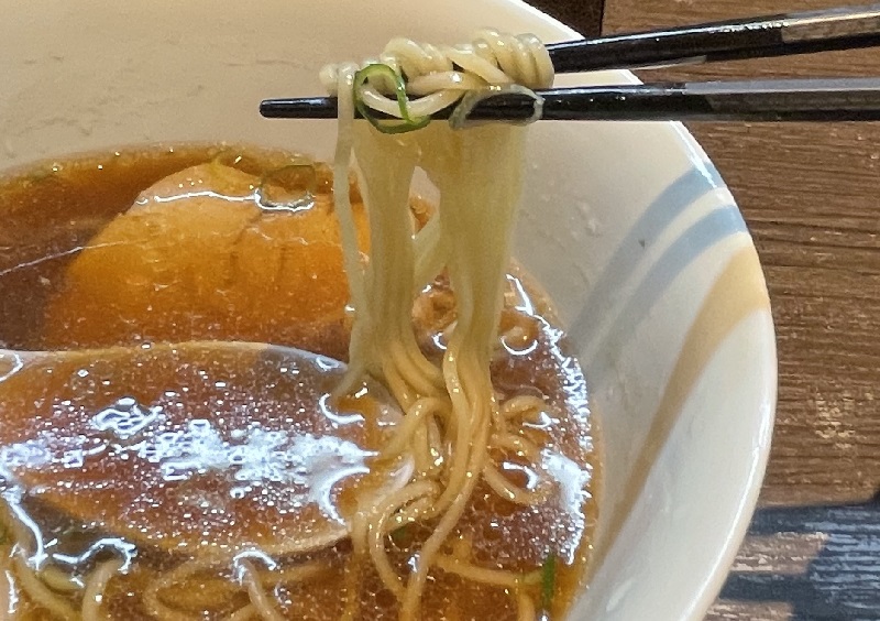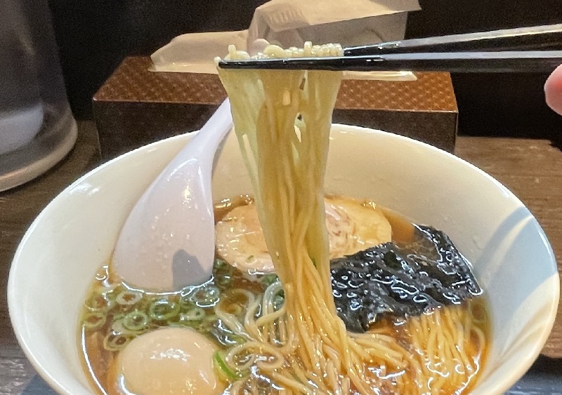 お店の2階で毎日作っている自家製麺は、コシのある細麺で啜り心地が抜群。スープの持ち上げが凄い!