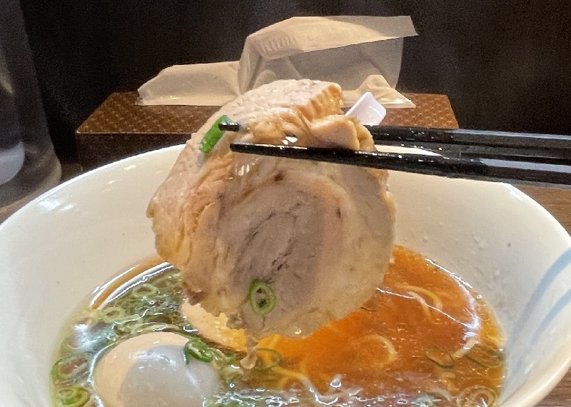 豚バラロールのチャーシューは、ホロホロながら肉の旨みを残した美味しいヤツ。2枚入り。