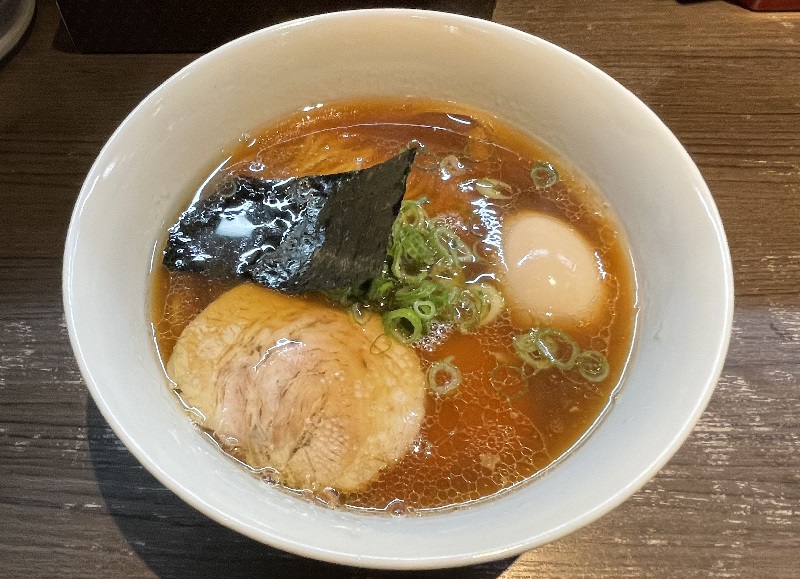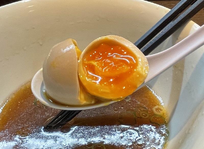 〆の味玉は、名古屋コーチンの濃厚・トロトロなもの。オレンジ色の黄身が高級感ありあり。