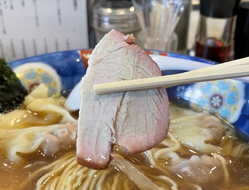 チャーシューは、昔ながらの中華店風。厚みがあり、歯ごたえのいい焼豚。
