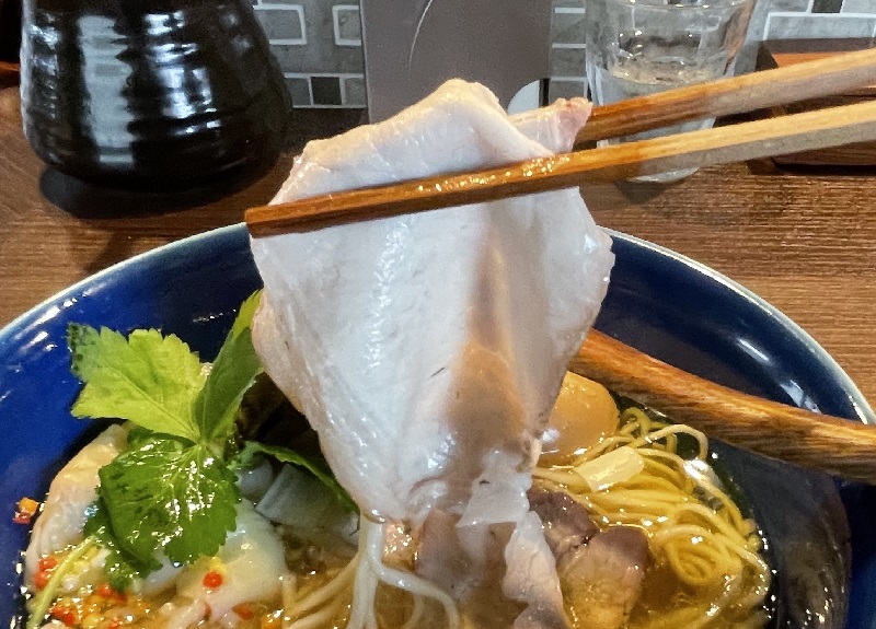 かたや、厚切りのチャーシューは、確かな噛み応えがあり、とてもいいコンストラスト。
