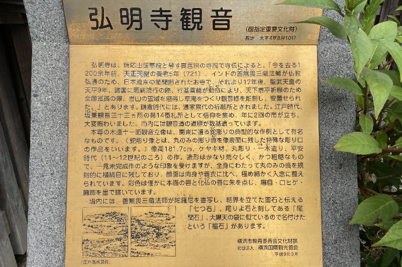 本尊の木造十一面観世音菩薩立像(弘明寺観音)は、国の重要文化財指定。